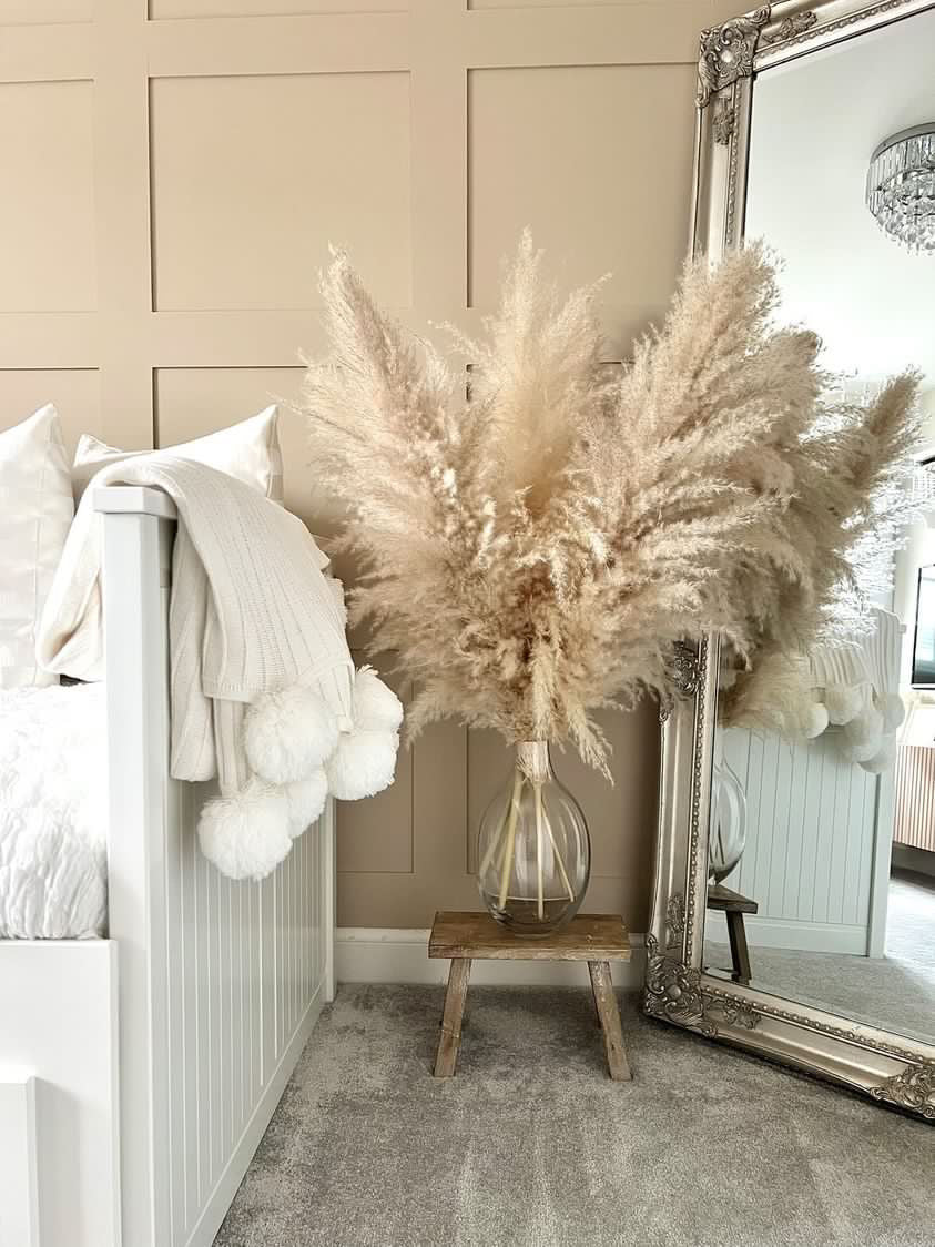 If you have a space in your home that needs filling, then large pampas will create the impact you need. Their large plumes will create a warm and welcoming atmosphere in any room. To get the most out of your pampas, we recommend styling them in a vase of 25-60cm in height and a neck width of no more than 10cm.